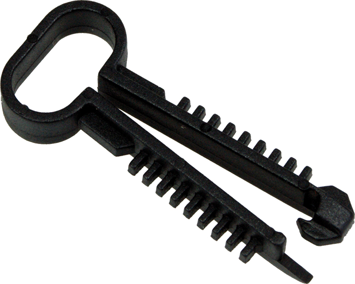 Nylon cable clip Cable clip and wall plug from TED Equipment® for a neat and aesthetic installation of flat, round or figure-8 telecom cables with copper pair, optical fiber or video signal. Suitable for long-term fixing into rigid materials such as concrete, marble and stone. Sold by pack of 200 units. Highly resistant to UV, chemicals and extreme temperatures. Installation every 30cm. The product's benefits: Easy and fast to install Enables cable protection Applications: For installation into hard materials such as concrete, stone, marble,...Only requires a drill for creating a hole Ø 6mm with a depth of 25 to 30mm |