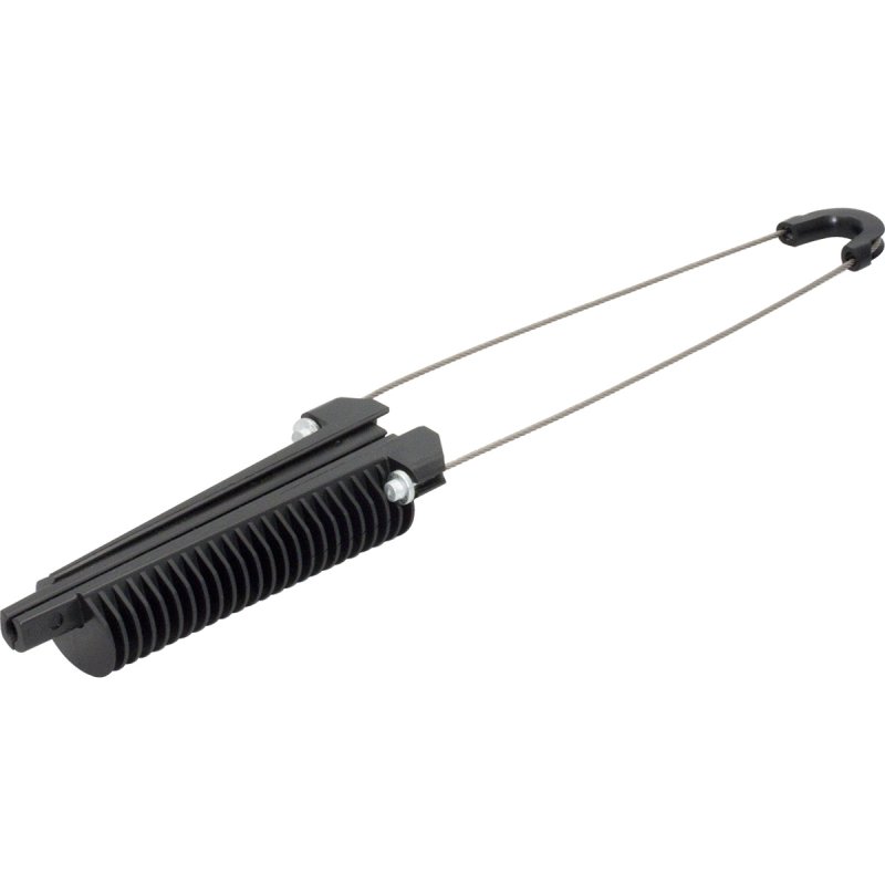 Termination clamp for ADSS cable The ACADSS anchoring clamps present an open conical body, a jaw with two plastic wedges and a flexible bail. These cable clamps are used for the termination of fibre optic round ADSS cables deployed on distribution networks where spans do not exceed 90m. Thanks to the conical clamping system, the installation of the ACADSS clamps requires no specific tools and considerably reduces the intervention time. The ACADSS range is available in two body sizes: ACADSS clamps with compact body and short wedges for lightweight cables and ACADSS clamps with standard body and long wedges for heavier cables or of greater capacities. Model: ACADSS8CQuantity: 50Designed with compact body. Cable clamping on 165mm long. The weight indicated here below corresponds to the total weight of 50 clamps. |