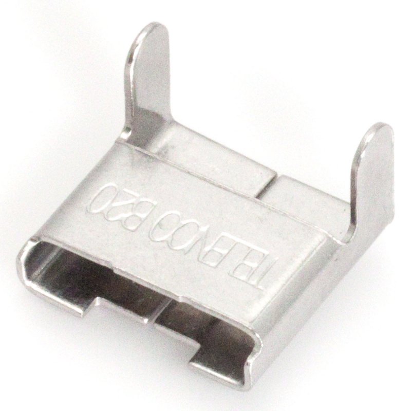 Pole band buckles Stainless steel standard buckles for fastening pole bands. These buckles are used for quick an reliable pole band attaching applications. 100-unit bag Dimensions: 20mm
