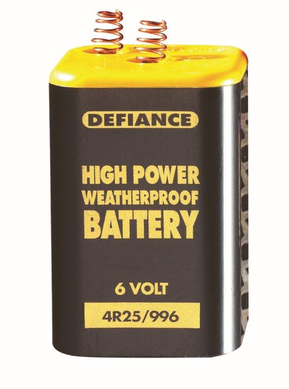 6 Volt battery, high power, rugged and weatherproof, suitable for use in road lamps, lanterns, torches etc.