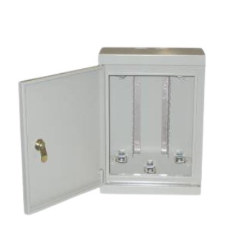 100 pair capacity lockable metal connection box, single vert. Dimensions: 430 x 280 x 150 mm