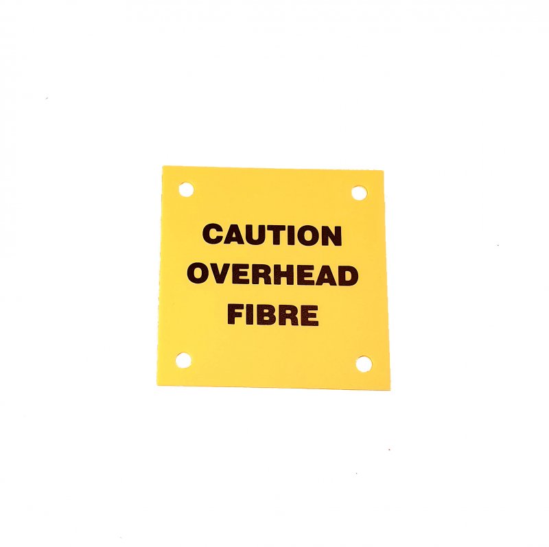 Plastic Label 'Caution Overhead Fibre' for Poles