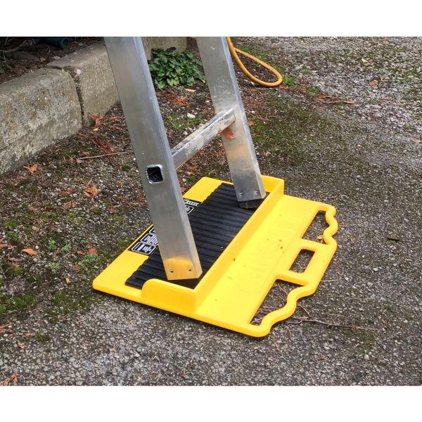 The LadderM8rix Pro-Plus ladder accessory helps to reduce ladder slippage and can be used on many outdoor surfaces, but with the added edition of a the heavy duty rubber on the underside of its carry case so it can be used indoors too.