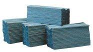 Blue C-fold hand towels with good absorbency. Approx 184 towels per pack, 16 packs per box