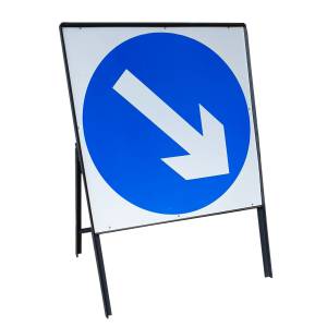 Temporary circular road sign on a square Zintec aluminium plate conforming to BS8442. Signs are offered in Class 1