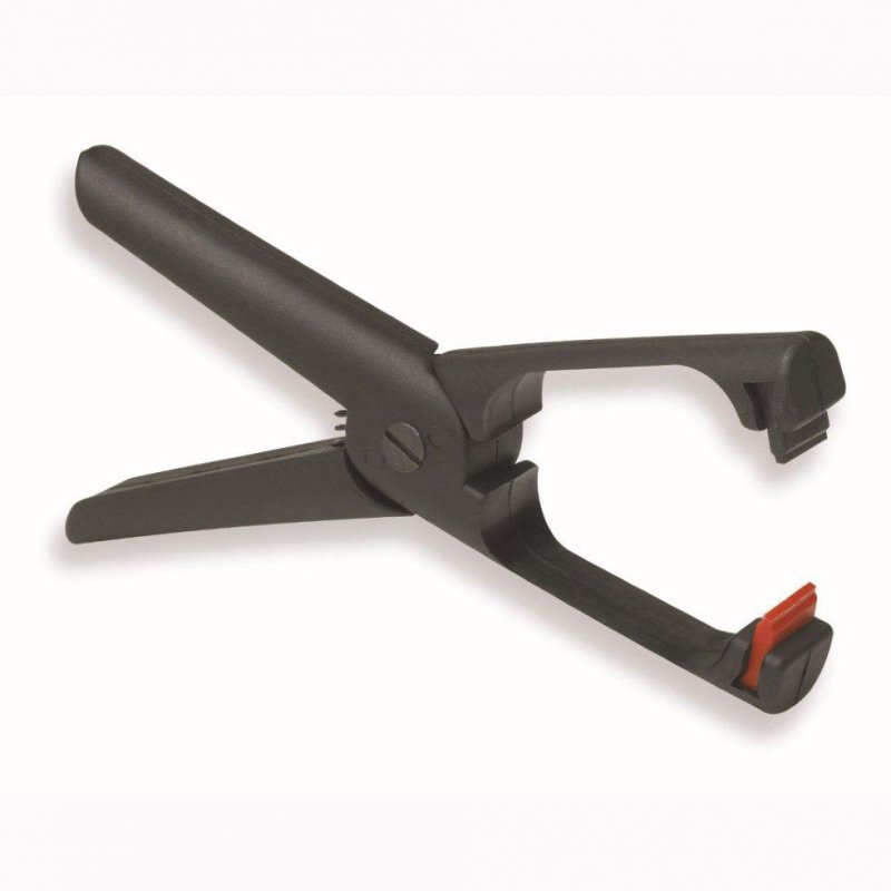 Stripper for fast removal of primary silicone coatings from optical fibres. Delring® stripping blades are permanently set at an angle which prevents any damage to the light guide. Supplied in a storage case and set of replacement blades.