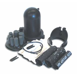 100 pair polypropylene domed Sleeve with polycarbonate clamp, incorporating 7 re-usable ports using heatshrink tubing.