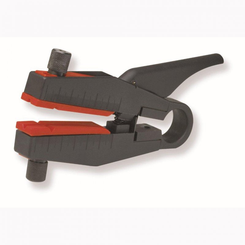 Lever action tool designed to remove Kevlar® reinforced protective sleeving from fibre optic bundles. Supplied complete with storage case and a set of sleeve guides. Stripping capacity: 2 – 7mm.