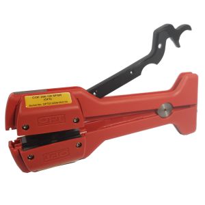 A profiled roller is located either side of the rotary blade to ensure the internal cable element is not damaged during the stripping operation. The handle locking mechanism ensures the stripper remains closed during the sheath stripping operation. A wrist strap and user instructions are supplied with each stripper.