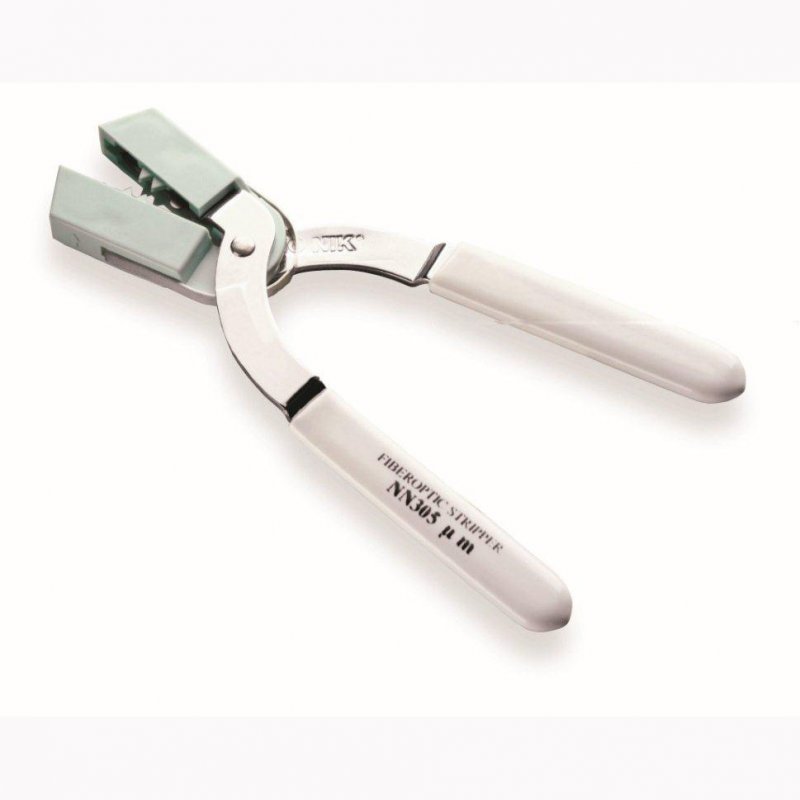 Optical fibre coating strippers with plastic heads, which make contact only with the insulation, centre and support the fibre on both sides. The sharp cutting blades score the coating completely, whilst the supporting back-up blades ‘lock-up’ when the tool is closed , maintaining perfect concentricity of the Fibre. Fibre Size: 200-250mm. Cutting Diameter 305mm (.012) |
